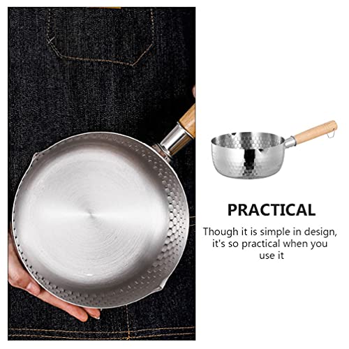 DOITOOL Stainless Steel Yukihira Pan Traditional Japanese Saucepan with Wood Handle Milk Sauce Pan for Ramen Tempura Milk 20cm