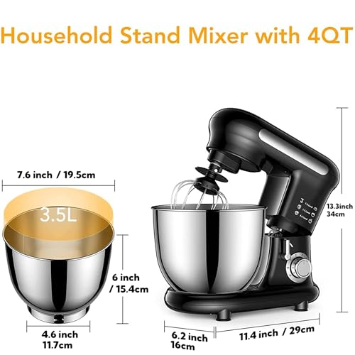 Dough Mixer, 1000 Baking Mixer, 3.5L Stand Mixer, Electric, 6 Speed, with Dough Hook, Whisk and Mixing Blade Attachment for Bread, Cake and Home Baking