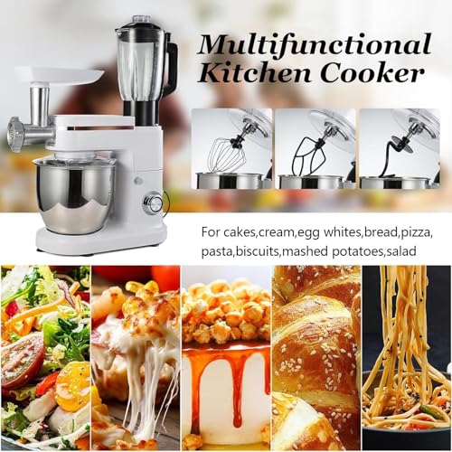 Dough Mixer 3 in 1 Multifunctional Stand Mixer with Stainless Steel Bowl, 6 Speed Tilt-Head for Efficient Mixing, Includes Dough Hook, Whisk & Beater for Baking, Cooking, and Meat Grinding