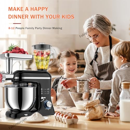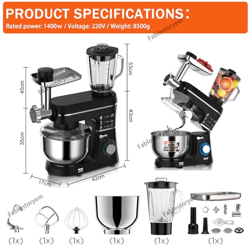 - Versatile 5-in-1 Kitchen Machine: Combines a stand mixer, meat grinder, and juicer into one powerful unit. Features a 10L large capacity stainless steel bowl and a 1.5L glass cup, designed for efficient mixing, blending, and grinding. Ideal for making cakes, bread, cookies, smoothies, and more.