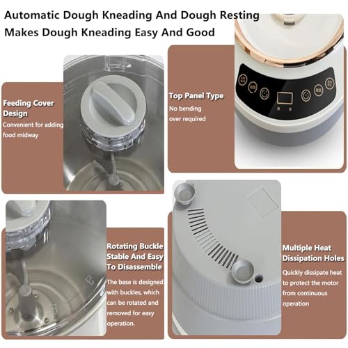 - ►【THOUGHTFUL DESIGN】 Dough machine of the upward-facing touch button design is clear at glance and reduces the number of bending down. The base is designed with silicone anti-slip suction cups to firmly grip the ground and prevent the dough mixer from shaking and shifting. The pot lid is see-through, making it easy to observe during the dough mixing process. The upper part of the pot lid is designed with small opening to facilitate adding ingredients during the dough mixing process.