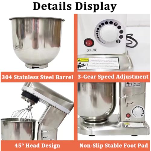 - 【3-IN-1 FUNCTION STAND MIXER】 Electric food mixer for baking comes with 3 Chef’s Accessories: Stainless Steel Whisk, Aluminum Alloyed Dough Hook, Aluminum Die-casting Flat Beater. No dishwasher to avoid oxidization, And the bottom suction feet keep the kitchen mixer steady and no displacement even it is working.