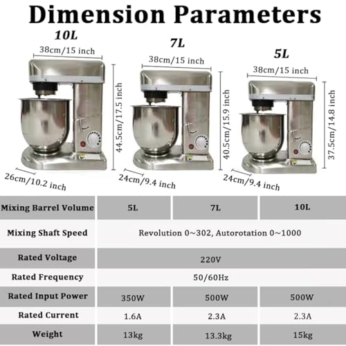 - 【500W POWERFUL MOTOR】The powerful motor & planetary mixing action around the whole 7L/10L mixing bowl ensures that the ingredients can be evenly mixed. The noise is very low, does not disturb daily life.
