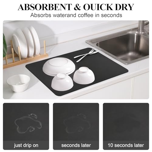 - ✔️【Quick water absorption & Drying】The microfiber tableware dish drying mat is made of high-absorbent nanomaterials. The drying mat is soft and absorbent, which can dry quickly and hide stains well. In addition, the dish mat is thick enough to better protect countertops, tableware and glassware from damage and pollution.