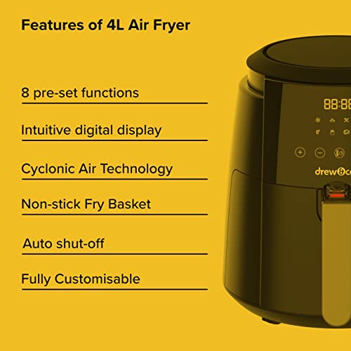 Drew&Cole Air Fryer 4L – 8-in-1 Digital Air Fryer – 4 Litre Capacity – 8 Pre-Set Programmes – Cook with Less Oil & Fat – Easy Cooking – Ideal Kitchen Appliance for Smaller Families & Couples