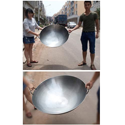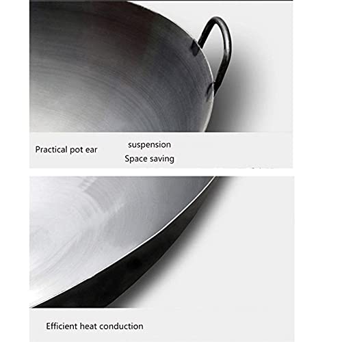 DuANgu Cast Iron Wok with 2 Handled,Woks and Stir Fry Pans Chinese Hammered Wok Round Bottom Pow Wok Traditional Chinese Japanese Woks (Size : 42cm/16.5in)