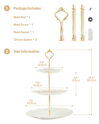 • 【More Easy Handling & Storage】Designed for convenience, our white cupcake stand features a frosted bottom to prevent slipping on smooth surfaces. The ceramic plates and metal stand effortlessly transform from a 3-tier centerpiece to a stackable, space-saving serving kit. Cleaning is a breeze, you can wash it by hand. Embrace practicality without compromising style.