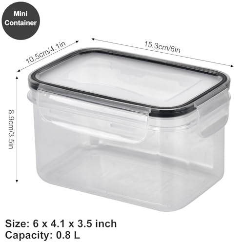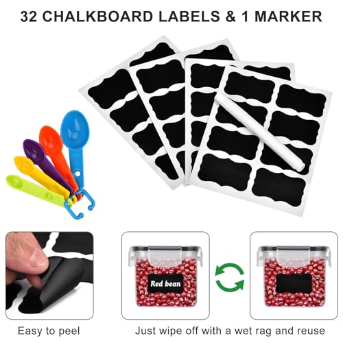 - DUOJIN set of 12 airtight food storage containers: 0.8L(6*4.1*3.5 inch). And we have 32 reusables labels(4 packs), 1 pen and 5 measuring spoons, You can organize your kitchen's grains, seasonings, snacks, candies, nuts, and more according to your needs.