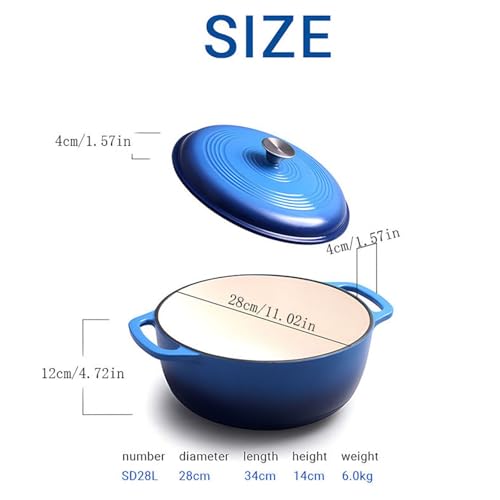 - Even Heat Distribution : This Multi-functional Non-stick Enameled Cast Iron Cookware with Lids, enamel which makes it very sturdy, durable,anti-deformation and anti-warping. This cast iron casserole dish, make heats up quickly and ensures optimal heat distribution storage