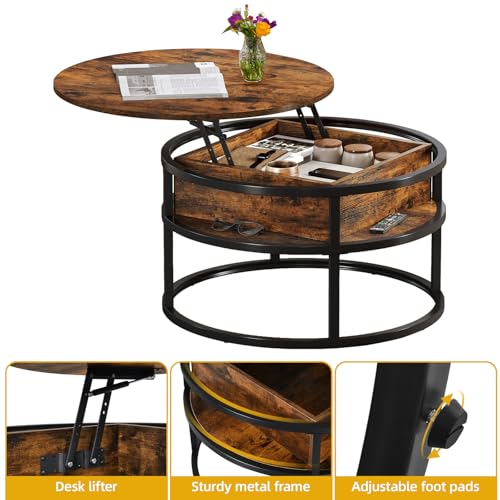 DWVO Coffee Table Round, Coffee Tables for Living Room, Lift Top Coffee Table with Storage and Hidden Compartment, Modern Coffee Table, Small Round Table