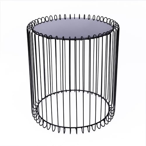 Dylex Set of 2 Round Cage Side Coffee Tables Black Glass Top And Metal Finish Base Ready Assembled