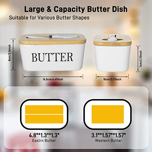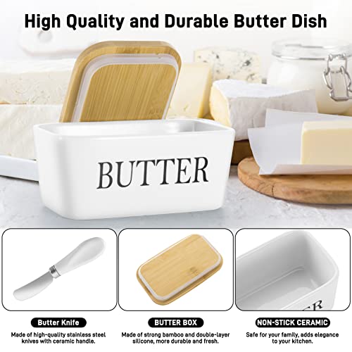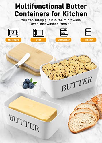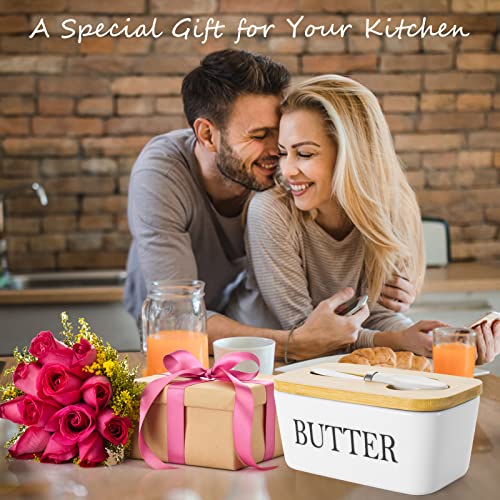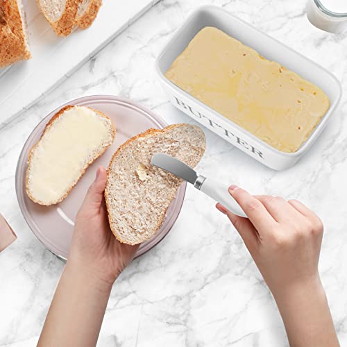 Dyserbuy Butter Dish with Lid, Butter Dish, Porcelain Butter Container with Double Silicone Seals Cover, Ceramic Butter Keeper with Knife, Perfect for East West Coast Butter, 650ml (White)