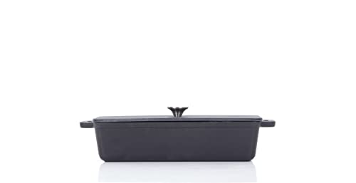 ECHTWERK EW-GE-1501 Cast Iron Bread Baking Dish with Lid, Loaf Tin, Enamel Coating, for Ovens, Grills, BBQ Inductions, 1.5 L, Diameter 28.2 x 12. cm, Black