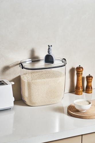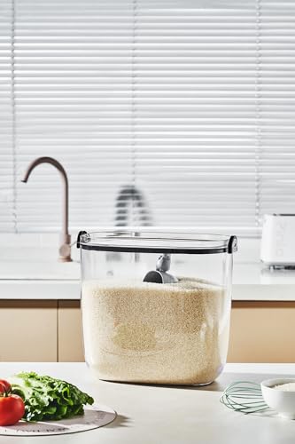 Eden & Willow Large Storage Box for Rice and Grains, Modern Kitchen Container with Air-tight Sealing and scoop for Rice, Cereal, Dog and Cat Food, Flour (Black, 8~10kg)