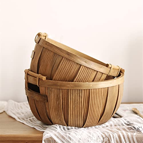Egg Basket Hand-Woven Wood Chip Storage Basket Desktop Fruits Basket Eco Natural Wood Vegetable/Eggs Storage Basket Picnic Basket