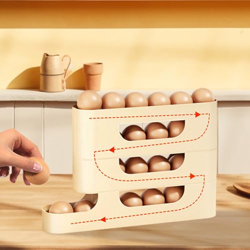 - ✅ 【Space-Saving & High Capacity】 With four tiers, this rolling egg dispenser can hold approximately 30 eggs, optimizing storage in your fridge or kitchen counter. Its compact design efficiently utilizes space, eliminating the need for bulky cartons while keeping your eggs accessible and neatly arranged.