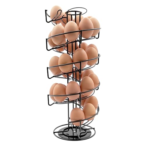 • ★Easy Access★–The innovative spin rack design allows you to easily see and access each egg without disturbing the rest, perfect for daily use in the kitchen or pantry.