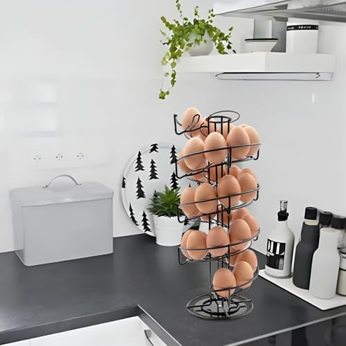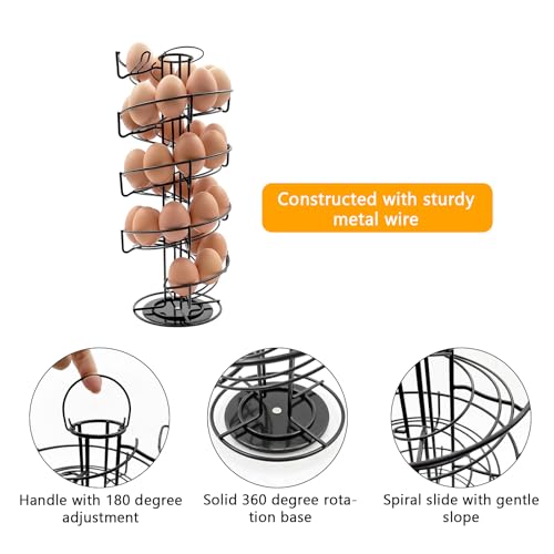 Egg Storage Basket, Iron Wire Egg Holder, 30 Capacity Egg Spin Dispenser Rack Holder for Chicken Duck Quail(Black)