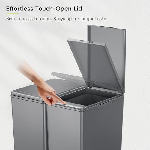 - TOUCH TOP LID WITH STAY-OPEN FUNCTION – Press lightly to open the lid smoothly, and keep it open for longer tasks. Ideal when cooking or cleaning so you can dispose of waste without touching the bin repeatedly.