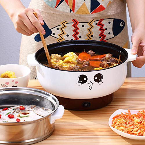 ele ELEOPTION 4-in-1 Multifunction Electric Skillet Non-Stick Stainless Steel Hot Pot Noodles Rice Cooker Steamed Egg Soup Pot MINI Heating Pan Cooking Fried, with Steam Grid, 2.8L(diameter 22CM)