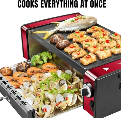 • Adjustable Temperature Control: Easily adjust the heat settings with a simple knob, allowing you to control the cooking speed whether you're slow-roasting kebabs or searing steaks.