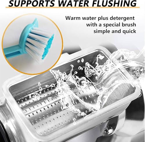 - Powerful Motor: This Cheese Grater is equipped with a 550W/0.75HP pure copper motor, ensuring quiet operation and outstanding grating efficiency. It effortlessly handles various grating tasks, delivering consistent results without the hassle of manual grating. Enjoy a seamless kitchen experience with this reliable and efficient kitchen appliance.