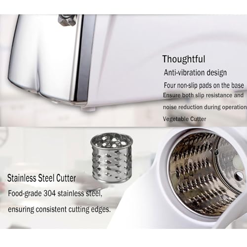 - Three versatile blade configurations: This electric grater comes with three interchangeable blades in large, medium, and small sizes, designed specifically to produce 4.5mm thick wires, allowing you to grate hard cheeses and root vegetables effectively. Note: Not suitable for frozen items or soft cheeses, ensuring the blades stay sharp and long-lasting.
