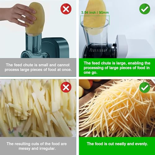 - 🍋【5-in-1 Kitchen Assistant】: Our professional electric shredder comes with 5 food-grade stainless steel blades: coarse shredding blade, fine shredding blade, slicing blade, wavy slicing blade, and grinding blade. It can be used to make various vegetable and fruit salads, potato chips, grind peanut powder, chocolate powder, and other nuts, making it the choice for a quality life. Even after prolonged use, our blades remain sharp.