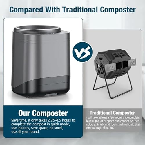 • Compact and Lightweight: Designed with a compact size (270*300*345MM), this composter fits seamlessly on your countertop without occupying excessive space. Its modern and stylish design will surely impress you upon arrival.
