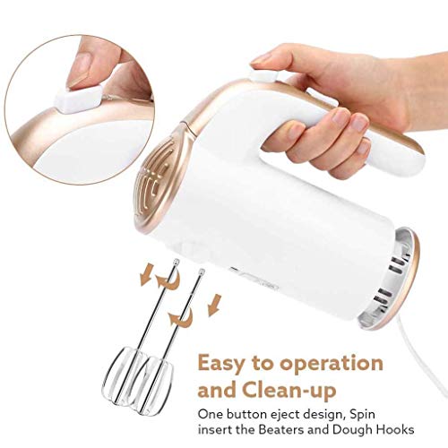 Electric Egg Beater 5-speed Light Hand Mixer, Mixer for Baking Cake Kitchen, Equipped with 2 * Beaters, 2 * Dough Hooks, Especially Practical and Easy To Use