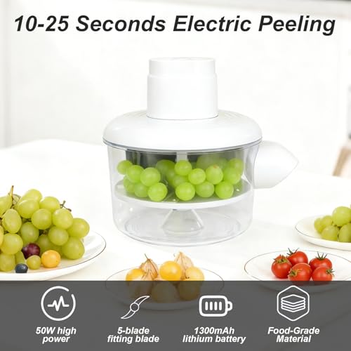 - High-Performance Peeler: This fully automated peeling device boasts a robust 50W brushless motor, efficiently removing skins from grapes, raisins, cherries, tomatoes, and garlic. Each session guarantees uniform peeling without harm, preserving the fruit’s freshness and nutrients to the fullest.