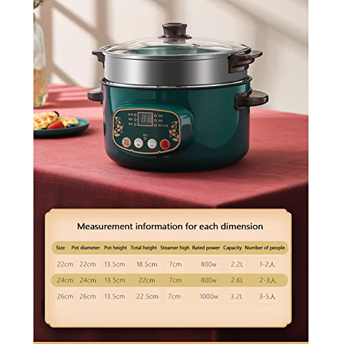 Electric Hot Pot, Mini Rice Cooker, Multi-Functional Griddle with Removable Nonstick Pot & Food Steamer, for Rice, Soups, Stews, Grains, Oatmeal, 22 cm