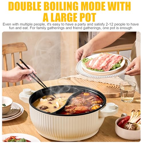 Electric Hot Pot With Divider, 2 Grid Multifunctional Stew Pot, Chinese Non-Stick Hotpot Cooker For Home Party (7L)