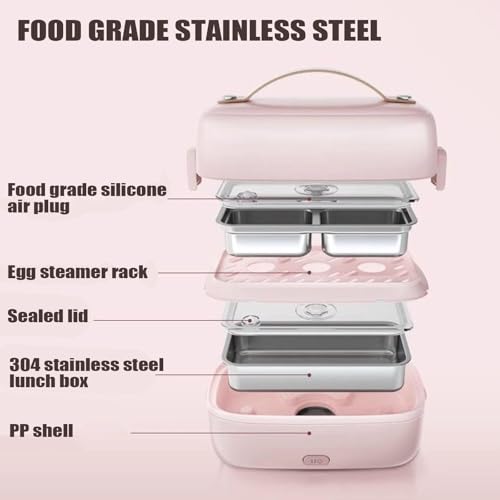 - ■FAST HEATING: The heated lunch box can be heated by 360 degree steam circulation to avoid uneven heating. It takes 15 minutes to steam the eggs and 30 minutes to boil completely. Our heating lunch box has the function of preventing dry burning.