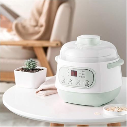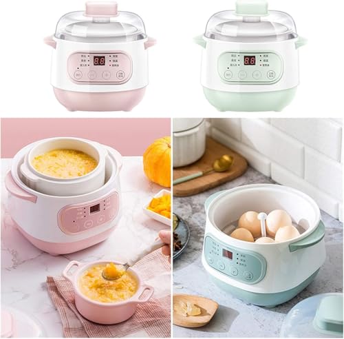 Electric Slow Cooker – 1l Ceramics Water Stew Pot 200w Smart Reservation Household Kitchen Appliance With Timing Function, Green