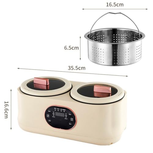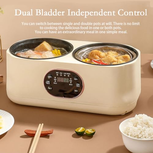 Electric Slow Cooker with Digital Screen, Non-Stick Dual 1.8L Pots for Multi-Functional Cooking, Rice Making, and Hotpot