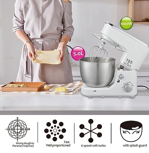 - ✔ 5L LARGE CAPACITY MIXING BOWL – This stand mixer is equipped with a 5L stainless steel bowl, which can meet the needs of ordinary families. It is a good helper for making cakes, breads, pizzas, pastas, desserts and biscuits. Use it to make your table recipes richer.