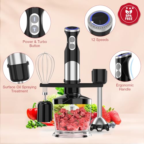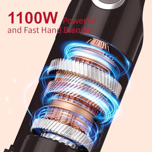 Electric Stick Hand Blender Handheld – 1100W 5-in-1 Immersion Stick Blenders for Kitchen Soup with 12 Speed, Turbo Boost, Chopper, Beaker, Whisk and Milk Frother for Milkshake Puree Smoothie Baby Food