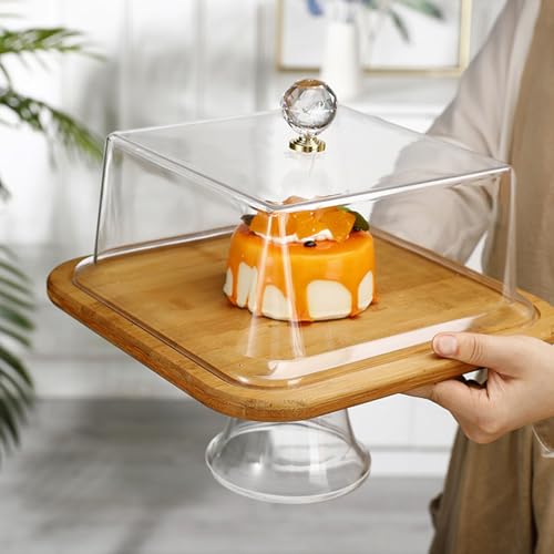 Elegant Square Cake Platter With Clear Lid Dessert Display Plate Wood And With Acrylic Lid For Baking And Celebrations Wood Cake Stand