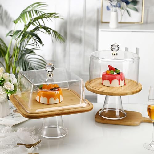 - From Wood and acrylic, this 11inch cake platter is durability, scratches resistant, and easy to clean, ensuring long time use while keeping your desserts freshing