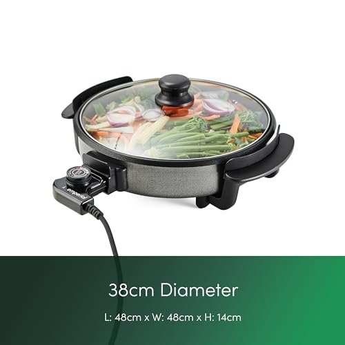 - MULTI-FUNCTION ELECTRIC PAN – Large 38cm diameter and 4cm depth allows you to fry, sauté, simmer and brown a variety of foods, whether they're are meals for one or meals for the whole family.