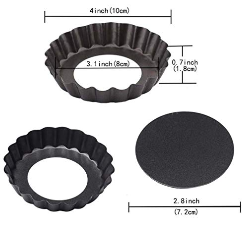 - Material: 4 inch mini tart pans are made of carbon steel, with strong thermal conductivity and good stability, and not easy to bend and deform; The surface of mini quiche pan is treated with a non-stick coating process, which is easy to use and clean