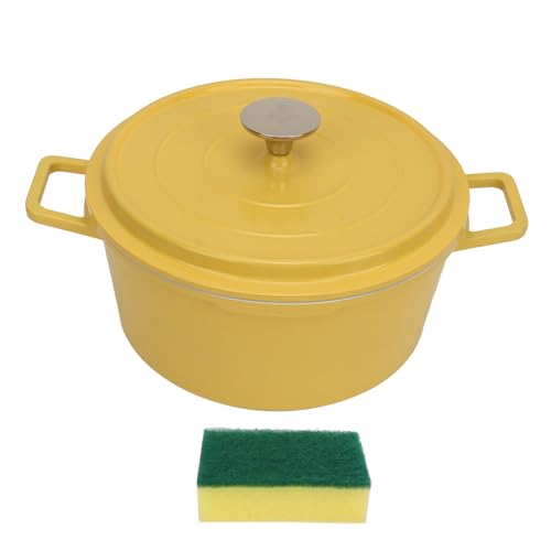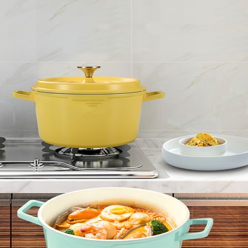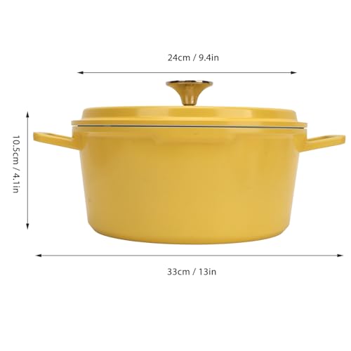 Enameled Dutch Oven, 9.4 Inch Dia. Non Stick Casserole Dish with Dual Handles and Lid – Large Capacity Deep Cast Iron Pot for Home Induction Cooker, Flame, Stove (Yellow)