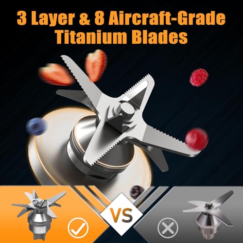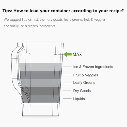 - Powerful & High-Speed Blender: This blender smoothie maker is equipped with a powerful 2000W motor, more powerful than a lot of blenders on the market, and works at up to 33,000 r/min, with 8 SUS 304 high-quality sharp blades. Blenders for the kitchen can instantly hard food such as nuts and seeds, to achieve the blending effect while retaining the original nutrition of the food without affecting the taste. Single-use time should not exceed 30S to avoid motor overheating.