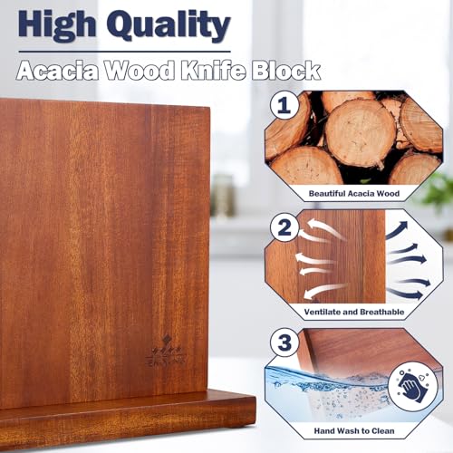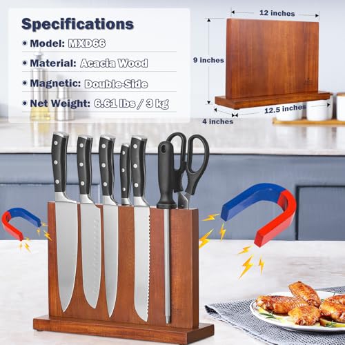 ENOKING Magnetic Knife Block Without Knives – Double Sided Magnetic Knife Holder & Stand,Acacia Wood Knife Storage Rack for Cutlery – Natural Wooden Knife Organiser,Quick-Fit Design