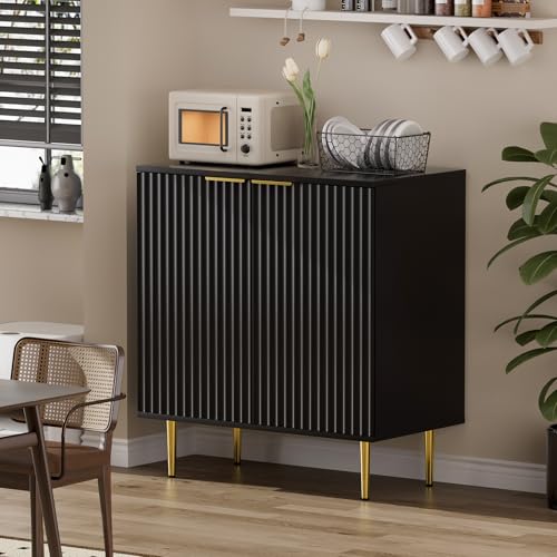 - Simple and Stylish Sideboard: EOYUTLLY sideboard cabinet is designed with unique wavy concave pattern, black cabinet with gold metal legs and door handles, making the whole buffet cabinet simple but stylish. It can be matched with any style of room, adding sophisticated charm to your home