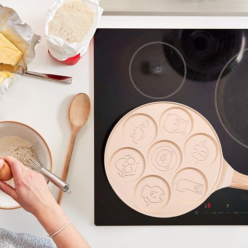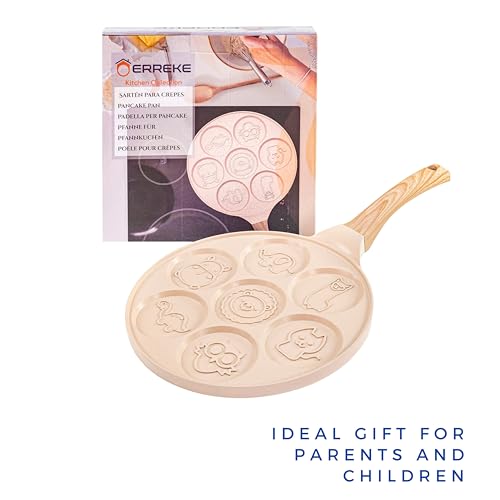 Erreke Pancake Pan, Crepe Pan, 7 Mini Pancakes Simultaneously, Double Non Stick Layer, All Types of Kitchens and Induction Hobs, Fun Design for Kids and Cooking, Soft Touch Handle, 26 cm, Beige