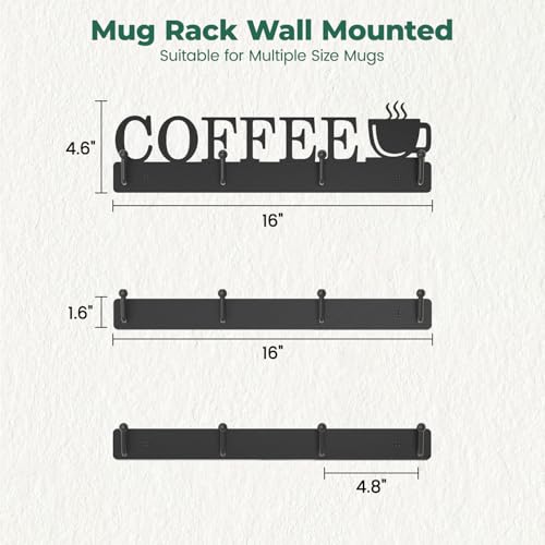 - Wall-Mounted Space Saver: Maximize unused vertical space with this coffee mug holder organizer. Keep countertops and cabinets clutter-free while turning your mug collection into a functional and eye-catching display