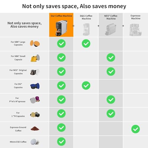 - 4 in 1 Coffee Brewer: 4 distinct coffee experiences with 1 machine, compatible with Dolce Gusto, Nespresso capsules, grounds, and ESE coffee pods. While saving you money, it also provides a simpler, happier life. Please do not use capsules from brands unsupported by the machine, as this may cause jamming!