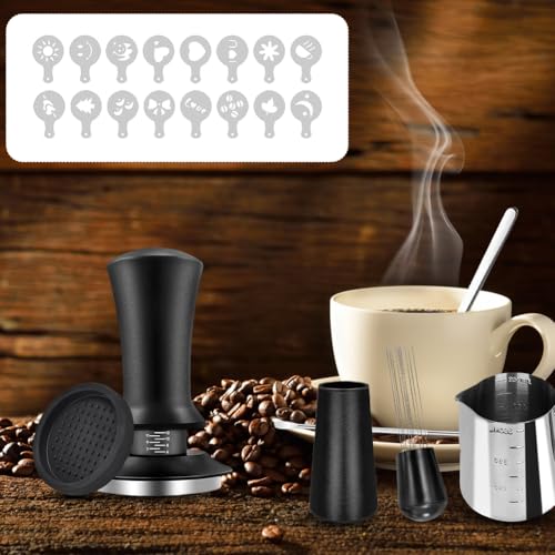 Espresso Tamper, Coffee Tamper Set, Coffee Distributor with 51 mm Espresso Tamper, Barista Accessories, Coffee Stirrer, Mixing Spoon, Espresso Mat, Frothing Jug, Latte Art Pen and Decorative Stencils